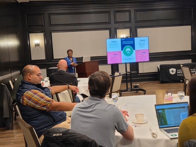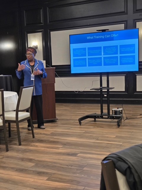 Our February meeting speaker, Dr. Geneace Williams with The City of Naperville, presenting on Beyond Buzzwords: Building Workplace Cultures where People Matter to our chapter members.